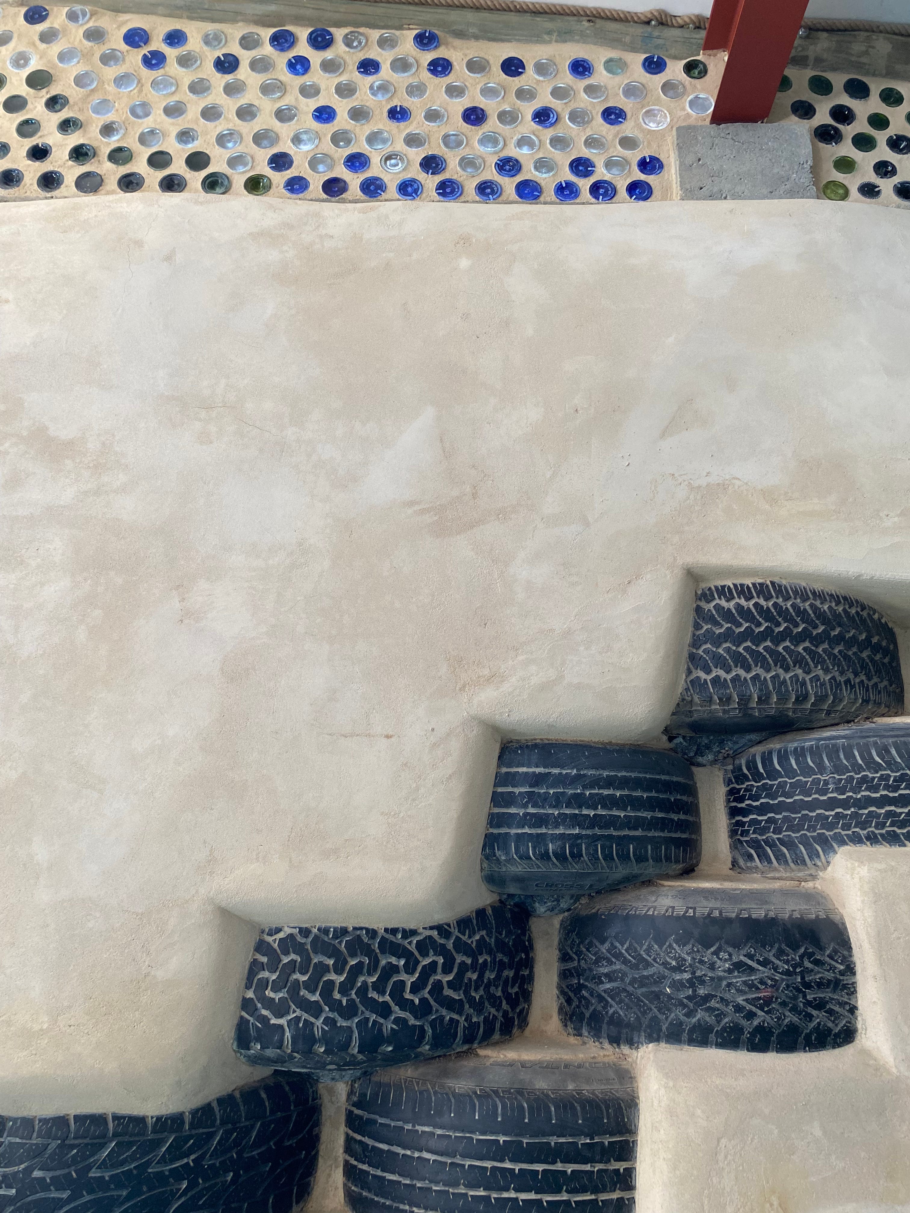 We then visited a Montessori school built from tyres, plastic bottles, glass bottles and cob, with one building already in use and another taking shape beside it, the funding directed primarily toward wages rather than materials. The building initiative is run by Mario, a former gang leader who chose a different direction when he became a father. The building itself is a thing of true beauty, constructed from materials that cost very little beyond hard-earned labour. Light filters through the glass bottles set into the walls, the ceilings high, discarded materials reworked into structure.